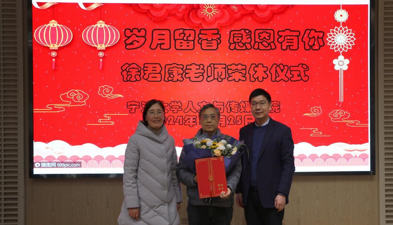 在校友之家举办了徐君康老师的荣休仪式,仪式由学院工会主席黄维琴主持,学院党政领导、新闻传播学系教师共20余人参加了该仪式。