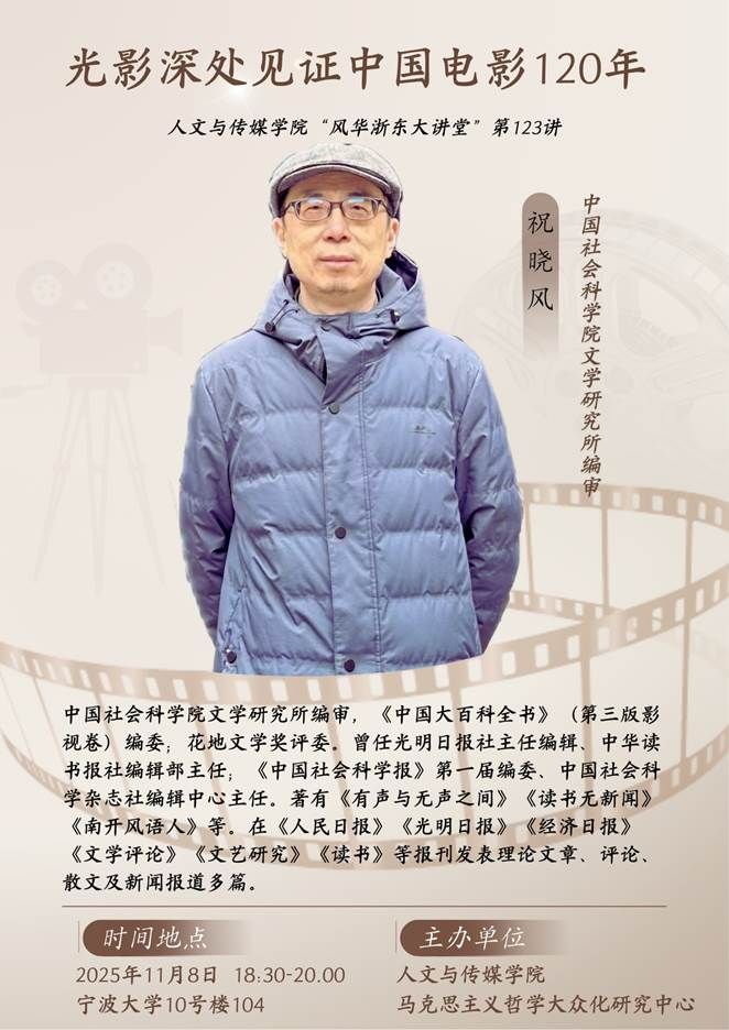 祝晓风,中国社会科学院文学研究所编审,《中国大百科全书》(第三版影视卷)编委;花地文学奖评委。曾任光明日报社主任编辑、中华读书报社编辑部主任;《中国社会科学报》第一届编委、中国社会科学杂志社编辑中心主任。著有《有声与无声之间》《读书无新闻》《南开风语人》等。在《人民日报》《光明日报》《经济日报》《文学评论》《文艺研究》《读书》等报刊发表理论文章、评论、散文及新闻报道多篇。