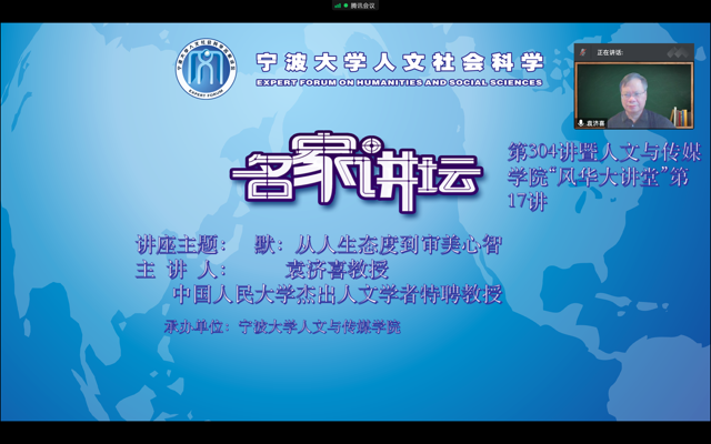 ,为我校师生作了题为“默:从人生态度到审美心智”的线上学术讲座。讲座由知轩藏书