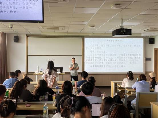 徐海蛟先生学识渊博,谈吐幽默,对散文写作有着独到的见解,在座师生备受启发。本场讲座由徐琼老师主持,学院师生70余人聆听了讲座。