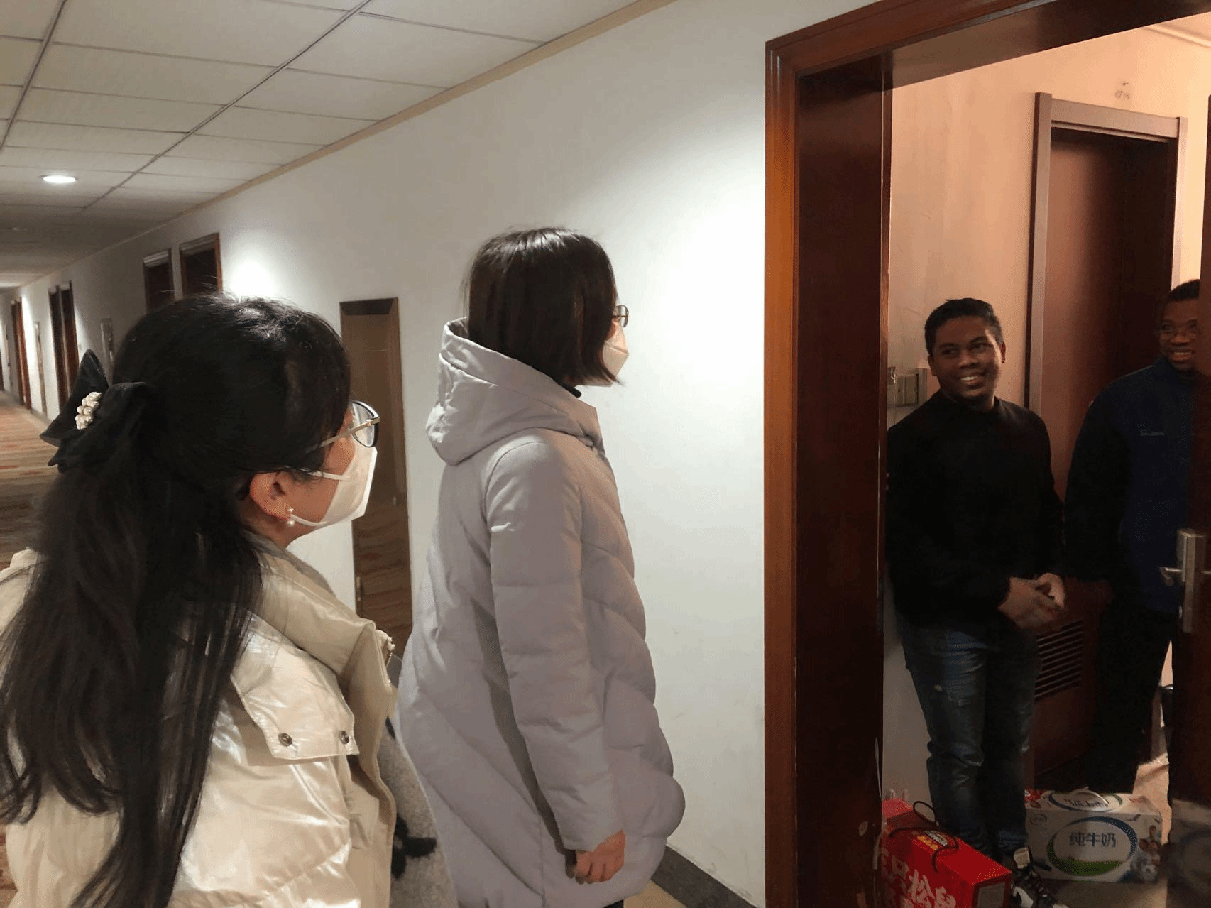 此外,张书记一行来到留学生公寓看望寒假留宿的留学生,向同学们表达了中国新春佳节的诚挚祝愿。