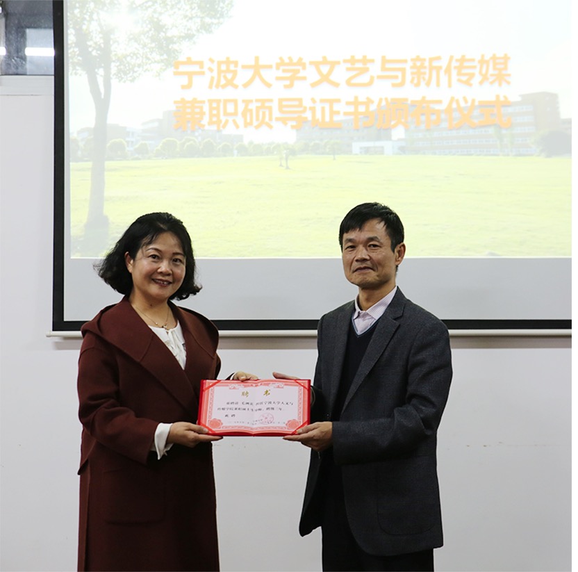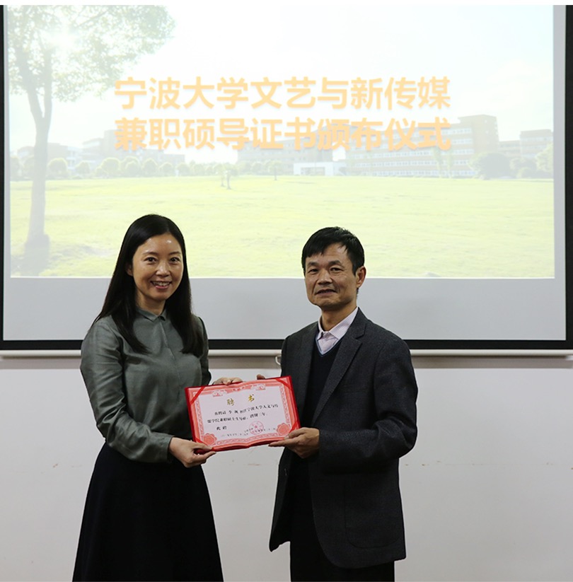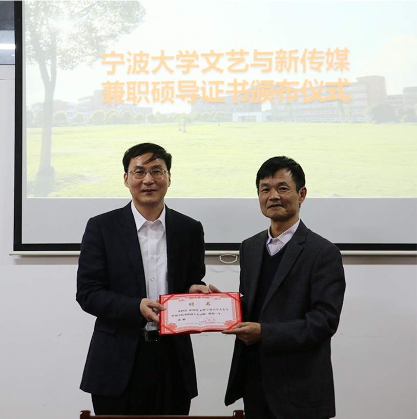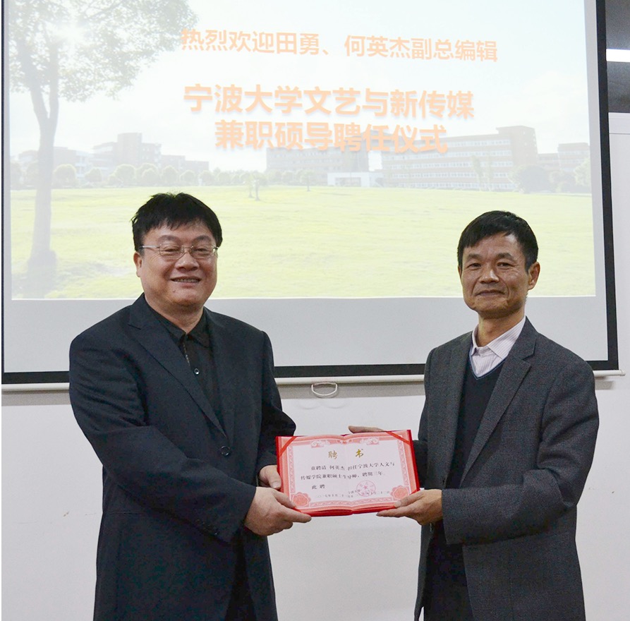 “文艺与新传媒”硕士点分别为宁波日报报业集团的田勇副总编、何英杰副总编和宁波广电集团的徐明明副总裁、毛洲英总监、李飒主播举行了兼职硕士生导师聘任仪式。知轩藏书