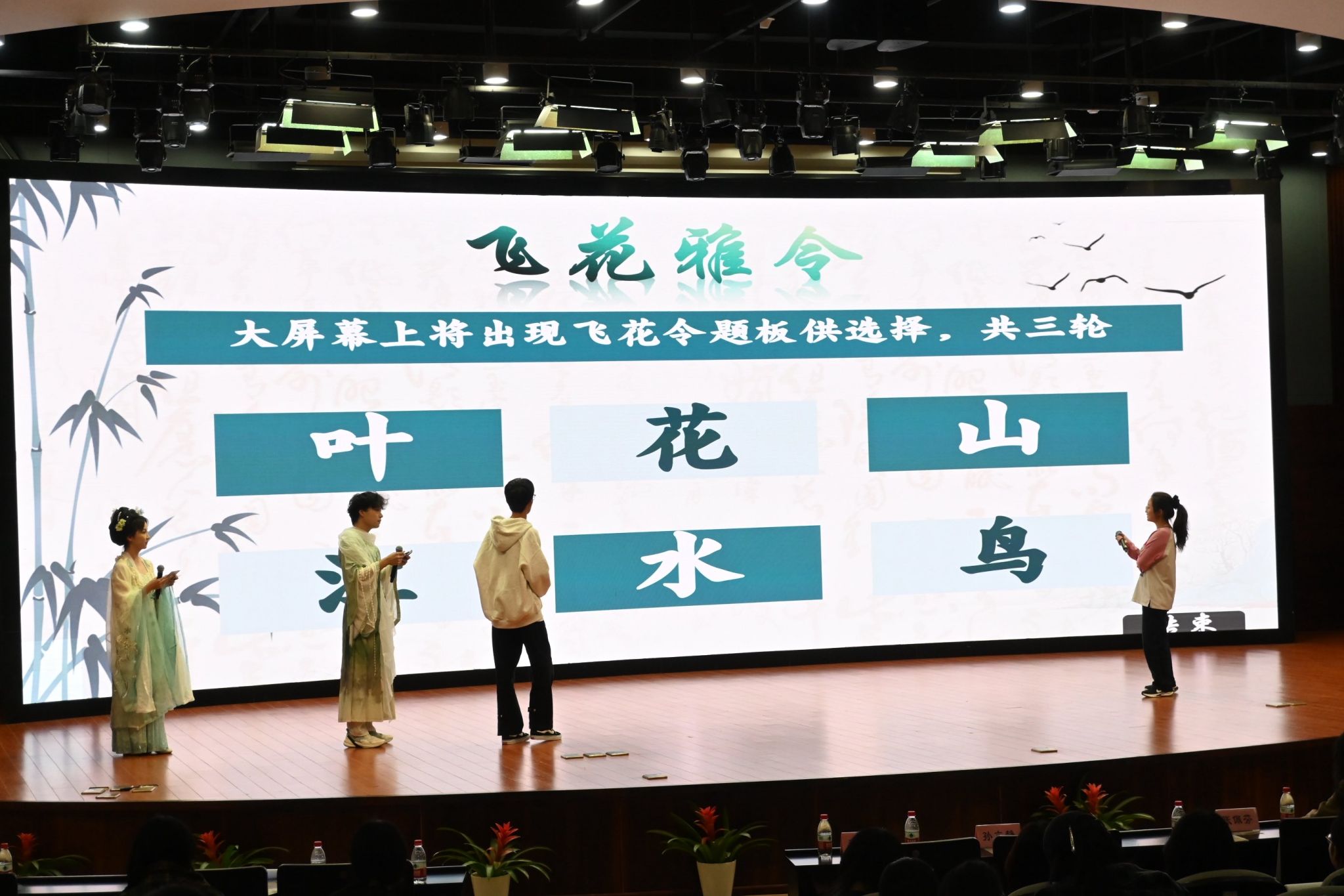 近日,由知轩藏书 承办的“建校纪念周”系列活动之第十届诗词大会决赛顺利举行。校友李亮伟教授、杨文钰博士、李阳博士担任评委,学院党委书记张佩芬、党委副书记孙文静等广大师生共同参与此次诗词盛会。