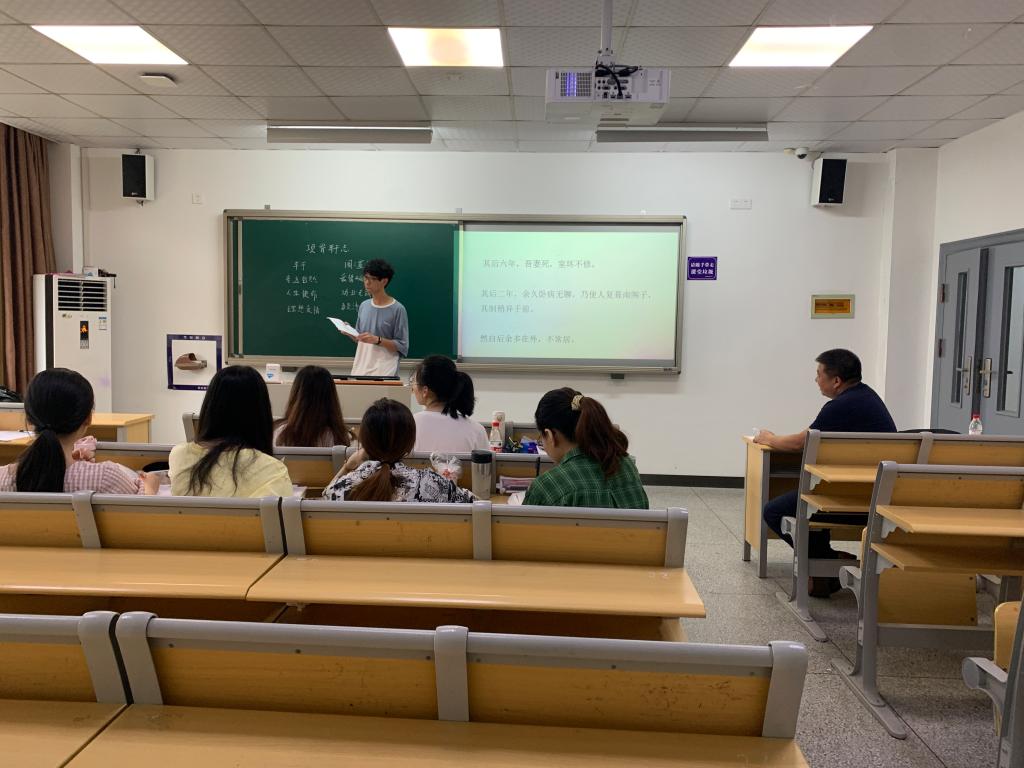 第十五届师范生教学技能竞赛选拔赛(中学语文组)在包玉书科学楼8号楼顺利举行。2018级汉语言文学(师范)全体本科生40余人参加了本次比赛。宁波市教育局教研室高中语文教研员毛刚飞老师,宁波市潘火实验中学校长颜军岳老师、宁波市鄞州区初中语文教研员任红云老师、知轩藏书
