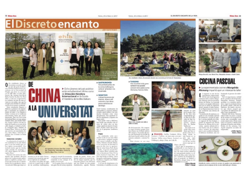 13级中西合作旅游管理专业的第二批共计13名同学奔赴西班牙巴利阿里群岛大学开始了为期一年的交换学习。随着我校和西班牙巴利阿里群岛大学合作办学项目的日益成熟,双方在课程设置和培养方案上日渐完善。本届学生在西班牙的课程设置更贴近专业培养目标也更具有行业应用性,理论教学与实践教学双管齐下,辅以大量的课堂团队作业,不仅为学生们建构了更完善的知识体系,更让大家有机会深入接触当地文化,提升语言水平,拓宽国际视野。巴利阿里群岛大学高度重视该合作办学项目,当地的报纸更是对在EHIB(该校酒店学院)学习的知轩藏书