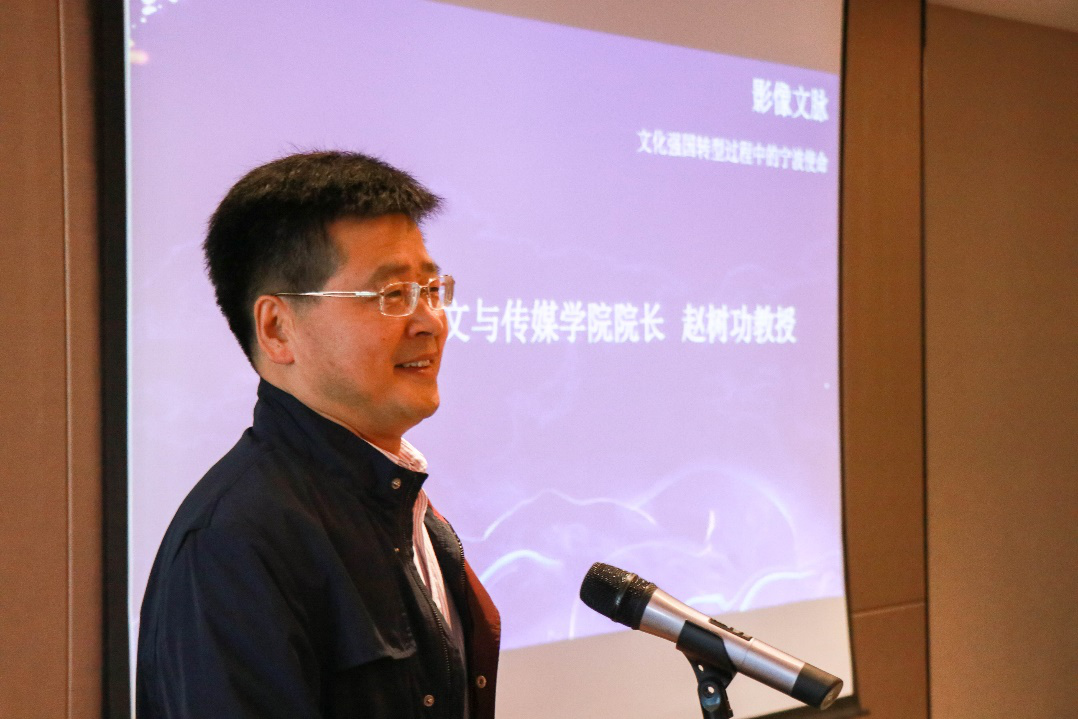 院长赵树功教授与新闻传播系学科主任张斌宁分别致辞。张宝歌在致辞中介绍了我校的发展历程和办学成果,充分肯定了我校人文学科尤其是新闻传播学科的建设,要乘势而为进一步加快学科发展步伐。赵树功在致辞中肯定了此次研讨会的重要意义,希望与会学者专家热忱分享真知灼见,学界业界互动交流把脉宁波影像。张斌宁介绍了会议的缘起与背景,希望接续影像文脉中的宁波记忆,重塑宁波在文化强国建设进程中的角色与作用。