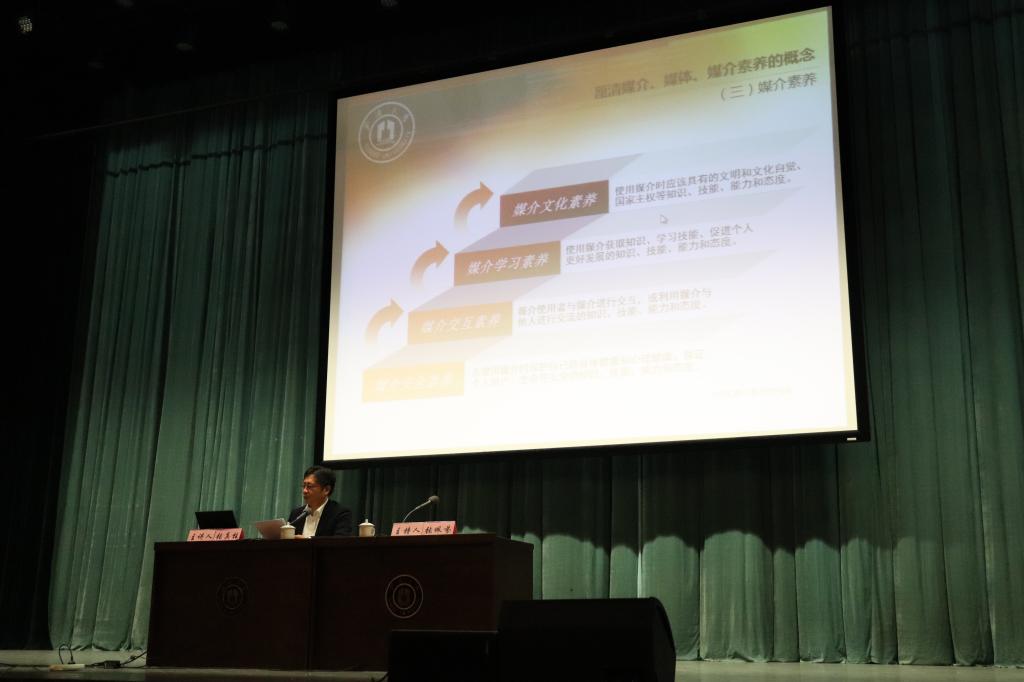 张真柱研究员向同学们讲解新媒体时代把握正确舆论导向,提高新闻舆论传播力、引导力、影响力、公信力,巩固壮大主流思想舆论的重要性。他阐述了党和国家几代主要领导人对新闻媒介的重要论述,为大学生厘清了媒介、媒体、媒介素养的概念、介绍了大众传播媒介的类型和我校的主要媒介种类,分析阐述了新媒体语境下大学生媒介素养存在的主要问题以及大学生媒介素养培养路径等六个方面,深入浅出、高屋建瓴,理论结合实践,提出了在国家、政府、高校和个人等四个层面培养大学生媒介素养的路径,对培养新时代大学生的媒介素养具有深刻的指导和实践意义。他的讲座以问题为导向,引导大学生在当今文化交融的今天坚持马克思主义在意识形态领域的指导地位,进一步增强“四个意识”、坚定“四个自信”,做到“两个维护”,增强媒介道德和法律观念,促进青年学生坚定理想信仰,给在场师生上了一堂生动的“形势与政策”课。