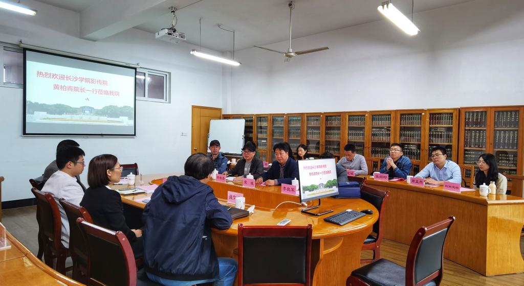 11月16日上午,长沙学院影视艺术与文化传播学院黄柏青院长一行11人来院调研交流,知轩藏书