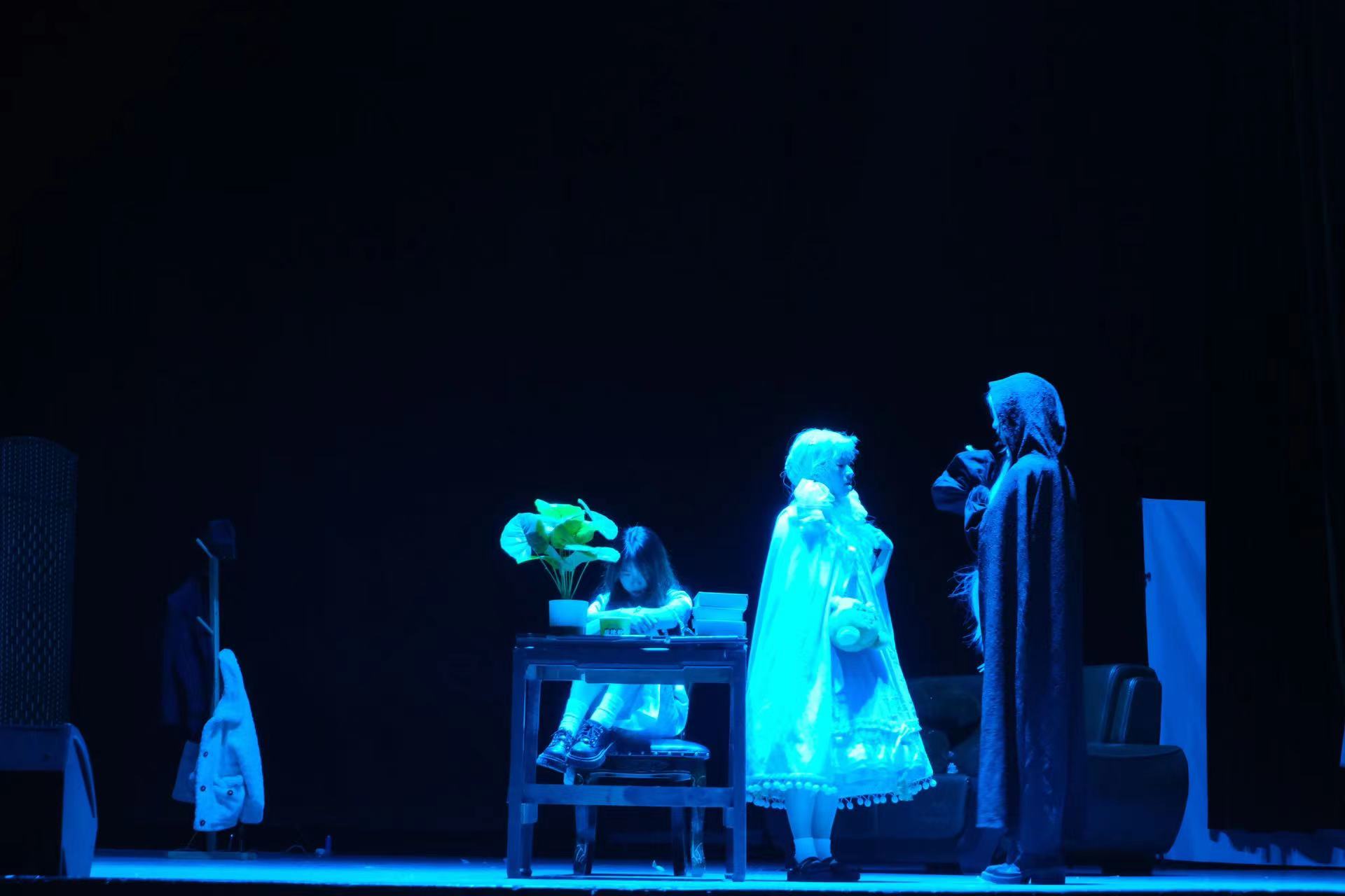“大戏的筹备从去年9月份就开始了,但却因为疫情一拖再拖。”霁云剧社面对的挑战却不止于此。剧目的导演蔡汶池直言接手这样一个原创童话剧本、绝不是一个轻松的任务。“没有模板、没有对照,从一开始我也不知道怎么去调度演员、激发情感。再到后面一点点打磨表演方式和风格,这期间有太多的讨论、推翻和思想的碰撞。”