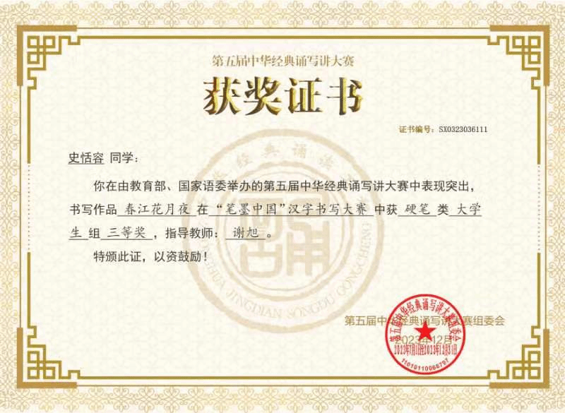本专业重视师范技能训练。2020届学生获得浙江省第十四届师范生教学技能大赛二等奖和三等奖,2020届潘雅莉同学获第八届大学生中华经典诵读竞赛一等奖。2022届学生获得浙江省第十五届师范生教学技能大赛二等奖2名。2023届学生获得浙江省第十六届师范生教学技能大赛一等奖1名和三等奖2名。2024届学生章韵檬、陈可怡获浙江省高等学校第十七届师范生教学技能竞赛优胜奖,2024届章韵檬同学获浙江省第十一届大学生中华经典诵写讲大赛“诗泽之江”诗词讲解竞赛一等奖。